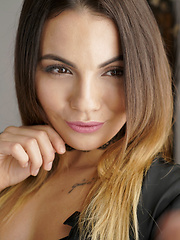 Mackenzee Pierce all dolled up in her formal dress and heels slowly does a sexy stripteas for us. She even shows off that shaved pussy with a dildo in