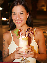 Anita E flashes her beautiful smile and shining eyes while she strips off her white top to tease you with her perfect body.