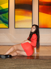 Cornine in a red dress and black panties