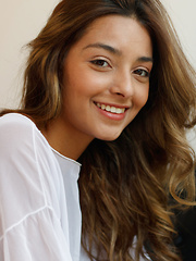 Sarika A shows off her big tits and trimmed pussy on the sofa.